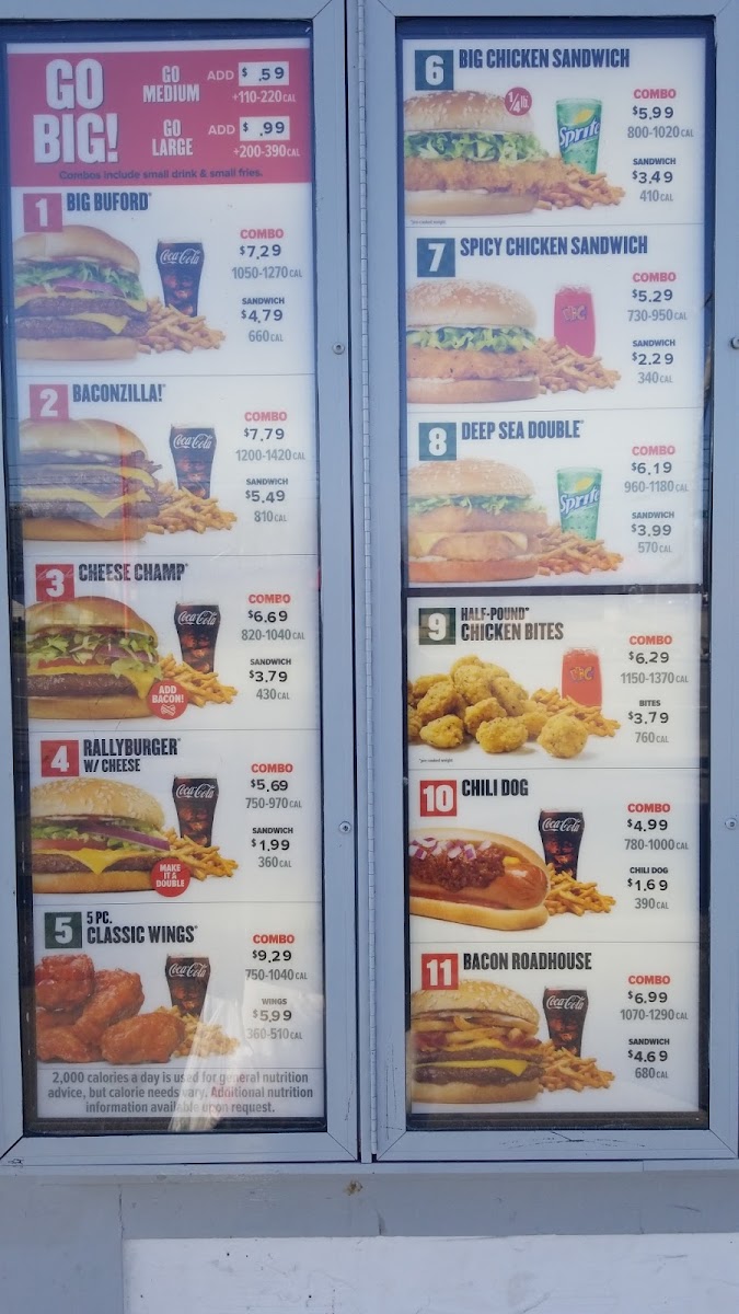 Rally’s in Columbus, OH, stands out with its hearty American fast food fare, specializing in juicy hamburgers, crispy chicken, and flavorful sandwiches. Their signature Big Buford is a powerhouse, made with two hand-seasoned 100% beef patties, melted American cheese, fresh iceberg lettuce, tomato, red onion, and classic condiments—all layered on a toasted bun. Fans of hot dogs can savor the Chili Dog, an all-beef frank topped with meaty chili and diced onions, delivering layers of bold flavor in every bite.